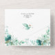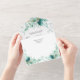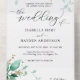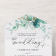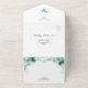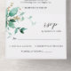 This elegant emerald greenery and gold wedding all in one invitation is designed with an easy to tear off perforated RSVP postcard. Simply fold the card, seal and send (no envelope needed).