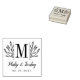 Elegant Greenery Monogram Names & Wedding Date Rubber Stamp