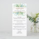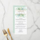 Delight your guests with this elegant Menu card. Set apart design featuring on the top a unique design with watercolor background and greenery details in a blend of soft green, turquoise, aqua and dusty blue hues. Hand written calligraphy details and gold elements. Back in an elegant pale green tone. Also available in turquoise. Part of our "Airy Blue and Green Watercolor" collection with a variety of coordinating products available.