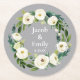 personalised names date wedding coasters, elegant outdoor chic cocktail reception, watercolor silver grey grey wreath, classic couple name typography floral, botanical rustic greenery round paper, modern rehearsal dinner foliage flowers, simple engagement party formal unique, minimalist anniversary celebration cute, bride groom spring autumn winter, custom couples shower fall summer