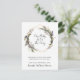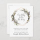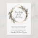 An elegant pregnancy announcement with delicate watercolor greenery wreath and a modern trendy script typeface.