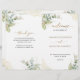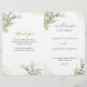 Welcome your guest with this exquisite wedding ceremony program, featuring  gorgeous watercolor Eucalyptus greenery details and delicate watercolor stains in a beautiful blend of green, blue, cream, beige and yellow tan hues. Use of hand written typography details in gold. Personalise the wording in all sides. NOTE: this programs arrive flat and require folding down the middle to assemble. The default value paper is recommended. For a clean fold we suggest the use of inexpensive bone folder. Part of our "Elegant Greenery Eucalyptus Wedding and Events" collection with a variety of coordinating products available.