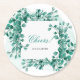 Add a refined finishing touch to your celebration with this elegant greenery wedding coaster, featuring a soft watercolor eucalyptus wreath and graceful script typography. The circular design frames your custom text beautifully, creating a cohesive and polished look that enhances your table décor.