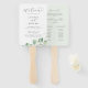 This elegant greenery wedding program hand fan is perfect for a simple wedding. The modern elegant design features a natural botanical arrangement of eucalyptus, leaves and plants with a subtle mint green watercolor wash accent. Include the name of the bride and groom, the wedding date and location, thank you message, order of service, and bridal party. Order your programs assembled or non-assembled.