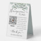 Paying via Venmo is a fun way for wedding guests to gift money for your wedding honeymoon. A polite and fun way of asking for money during your wedding shower. Add your own Venmo QR code image to your honeymoon fund sign. Change the text and wording to ask for Venmo honeymoon fund to match your own style. Elegant greenery style wedding decor containing eucalyptus and other foliage. Order several honeymoon fund signs to display at your wedding reception, at your gift table, guest book table, and other locations in your reception hall. This Venmo display sign can also be used at your honeymoon bridal shower. An