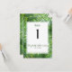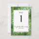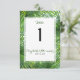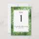 A trendy wedding design for a wedding reception, an elegant table number card with lush tropical greenery, framing a template area customised with your names in modern script, the date and a large table number.
