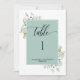Help your guests find their table with this elegant greenery table number card. Matching seating plan cards available. Frame in green with delicate greenery watercolor details showcasing your table number personalised with name(s) and event. Double sided cards so guests can look from both, front or back. Clear space all around giving you the liberty to use all kinds of table holders or frames. Modern hand written calligraphy details. Greenery in a beautiful blend of green, blue, yellow tan, and terracotta hues. Also available with frame in white, in mist blue and in beige tan. Have all table numbers in same colour or mix colours according to your event's colour theme. Part of our "Elegant Greenery Eucalyptus Wedding and Events" collection with a variety of coordinating products available.