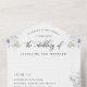 Elegant Greenery, White Dusty Blue Floral Wedding All In One Invitation