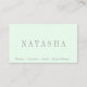 Plain, Simple, Modern, Elegant Classy Two Sided, Pale / Pastel Green with Grey Standard Font, First Name Text Only, Professional Business Card ideal for a Female Designer, Interior Decorator, Makeup Artist, Make up, Cosmetologist, Hairdresser, Hair Stylist, Project Manager, Event Planner, Wedding Planning, Public Relations Consultant, Occupational Therapist, Dentist, Psychologists, Psychiatrist, Realtor or Real Estate Agent, Attorney, Lawyer, Solicitor, Paralegal, Chiropractor, Cleaner, Veterinarian, Interpreter & Translator,Sales Representative / Rep, Housekeeper, Social Worker and many other professionals.