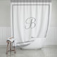 A sophisticated shower curtain featuring a single script monogram initial framed by a refined grey border on a clean white background. The minimalist, hotel-inspired design adds timeless elegance to any bathroom. A beautiful gift for new homeowners, couples, or anyone who appreciates classic, understated style. The initial is fully customisable.