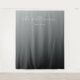 This elegant wedding backdrop features a minimalist design with a gradient grey background that transitions from light to dark. The focal point is the stylish cursive script font, which adds a touch of sophistication and personalisation. Below, a simple sans-serif font provides clarity for any date or details you wish to include. The monochromatic colour palette creates a serene and modern atmosphere, perfect for a timeless and understated wedding celebration.