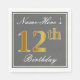 Elegant Grey, Faux Gold 12th Birthday; Custom Name Napkin