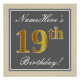 Elegant, Grey, Faux Gold 19th Birthday + Name Poster