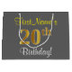 Elegant, Grey, Faux Gold 20th Birthday + Name Large Gift Bag