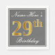 Elegant Grey, Faux Gold 29th Birthday; Custom Name Napkin