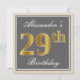 Elegant, Grey, Faux Gold 29th Birthday + Name Invitation
