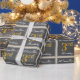 This simple and elegant wrapping paper design features a personalised message like "ANameHere’s 3rd Birthday" (with the "3rd" having a faux/imitation gold-like colouring look) within a grey-coloured square area featuring a simple border outline. The name is in an elegant white-coloured script-like text, and can be personalised. Wrapping paper like this could perhaps be used when wrapping birthday gifts for somebody who is celebrating their third birthday. [~Z0000222]