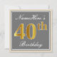 Elegant, Grey, Faux Gold 40th Birthday + Name Invitation