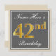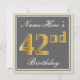 Elegant, Grey, Faux Gold 42nd Birthday + Name Invitation