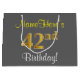 Elegant, Grey, Faux Gold 42nd Birthday + Name Large Gift Bag