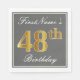 Elegant Grey, Faux Gold 48th Birthday; Custom Name Napkin