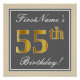 Elegant, Grey, Faux Gold 55th Birthday + Name Poster