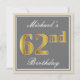 Elegant, Grey, Faux Gold 62nd Birthday + Name Invitation