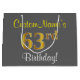 Elegant, Grey, Faux Gold 63rd Birthday + Name Large Gift Bag