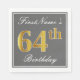 Elegant Grey, Faux Gold 64th Birthday; Custom Name Napkin