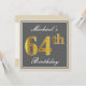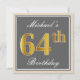 Elegant, Grey, Faux Gold 64th Birthday + Name Invitation