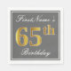 Elegant Grey, Faux Gold 65th Birthday; Custom Name Napkin