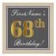 Elegant, Grey, Faux Gold 68th Birthday + Name Poster