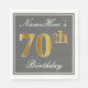 Elegant Grey, Faux Gold 70th Birthday; Custom Name Napkin