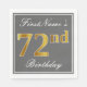 Elegant Grey, Faux Gold 72nd Birthday; Custom Name Napkin