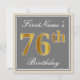 Elegant, Grey, Faux Gold 76th Birthday + Name Invitation