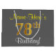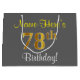 Elegant, Grey, Faux Gold 78th Birthday + Name Large Gift Bag