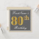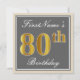 Elegant, Grey, Faux Gold 80th Birthday + Name Invitation