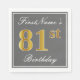 Elegant Grey, Faux Gold 81st Birthday; Custom Name Napkin