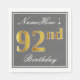 Elegant Grey, Faux Gold 92nd Birthday; Custom Name Napkin