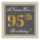 Elegant, Grey, Faux Gold 95th Birthday + Name Poster