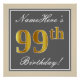 Elegant, Grey, Faux Gold 99th Birthday + Name Poster