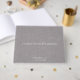 A simple elegant couple's wedding name monogram with names and date, on a grey faux linen effect background. simple elegance. Wedding guest signing keepsake book. Elegant ancient serif type modelled on Roman engraving style. If you would like to change the colours of fonts or font style, after personalising simply click on "edit further", select your type and see the colour palette on the right, and the font choices.