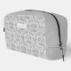 Elegant grey floral and botanical pattern toiletry bag. Top and sides of the bag are in a soft grey colour. Easy to personalise with your name.