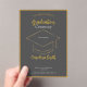 Celebrate your special achievement with this elegant grey and gold graduation invitation. Designed with a refined charcoal grey background, luxurious gold accents, and a modern graduation cap illustration, this card brings a stylish and sophisticated touch to your ceremony announcement. Perfect for graduates looking for a timeless, classy, and premium invitation to share with family and friends.