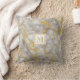 Elegant Grey Marble Monogram Faux Gold Glitter Cushion