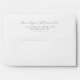 This wedding envelope features a minimalist design with a clean, white background and a soft grey colour palette. The typography combines elegant cursive script for the names with a modern sans-serif font for the address, creating a sophisticated and contemporary look. The layout is simple and balanced, utilising ample negative space to enhance readability and convey an understated elegance. Perfect for couples seeking a refined and timeless aesthetic for their special day.