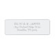 This return address label features a minimalist design with centred text on a clean white background, creating an elegant and sophisticated look. The grey serif font adds a touch of classic refinement, ensuring readability while maintaining a subtle contrast against the backdrop. Perfect for those who appreciate simplicity and clarity, this label is ideal for formal correspondence or special occasions where a polished presentation is desired. Its customisable nature allows for personalisation without compromising its understated charm.
