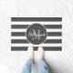Set off your front porch or patio with this Elegant Grey Monogram Script Name Doormat. This minimal design has dark grey horizontal stripes on white background and circle border on the centre. Your monogram initial is in light grey simple lettering and personalised with name in white trendy hand lettered script. Click personalise template option and follow the prompts.