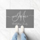 Elegant Grey Monogram Script Name Wedding Date Doormat