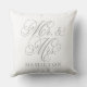 Elegant Grey Mr and Mrs Script Custom Monogram Cushion